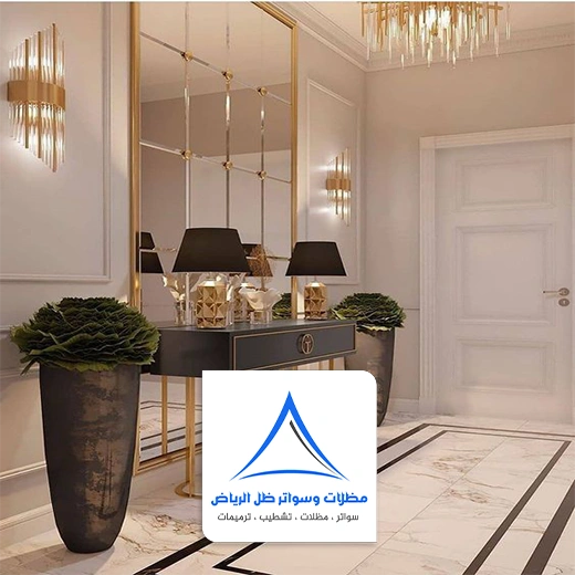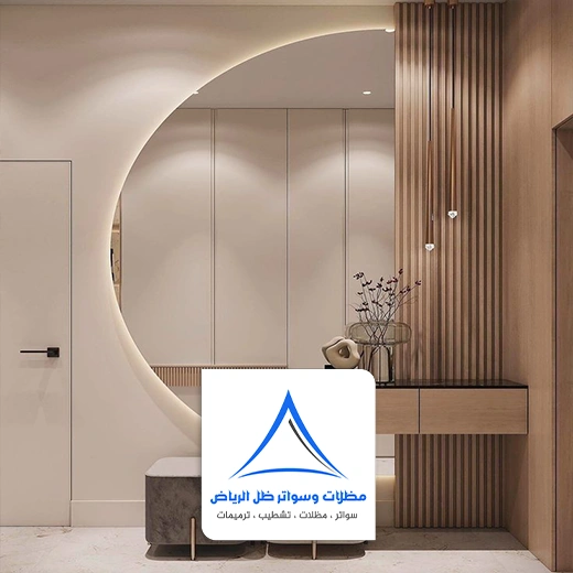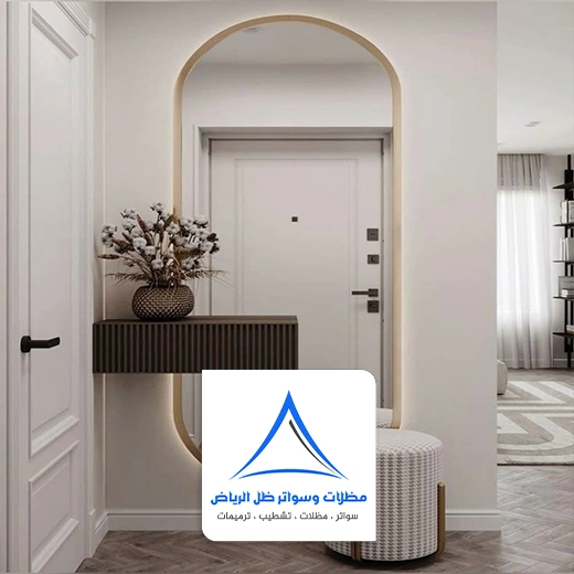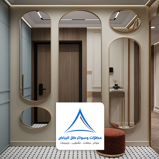 تعد المداخل من أهم الأماكن التي يتم تركيب مرايات ديكور الرياض فيها فهي تعطي المدخل لمسة من الفخمة والرقي وتجعل مساحة المدخل أوسع بصرياً حيث أن المرايا بأشكالها وتصاميمها الإبداعية تمنح المدخل أجواء فريدة من نوعها وبالإضافة إلى ذلك فإنه تزيينها بلمسات إضافية مثل الإطارات المزخرفة أو وضع نباتات للزينة وغيرها.